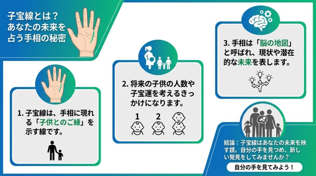 実は、手相には**「子宝線(こだからせん)」**と呼ばれる、子供とのご縁を表す線が存在します。