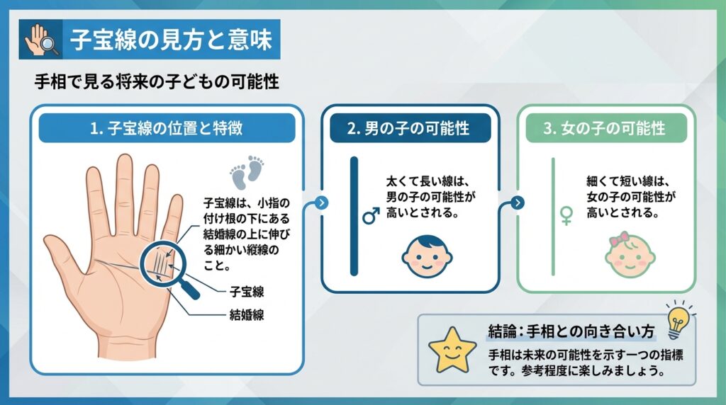 左右どちらの手で見ればいいのか、線の形が表す意味(性別や双子の可能性)など、気になるポイントをチェックしていきましょう!
