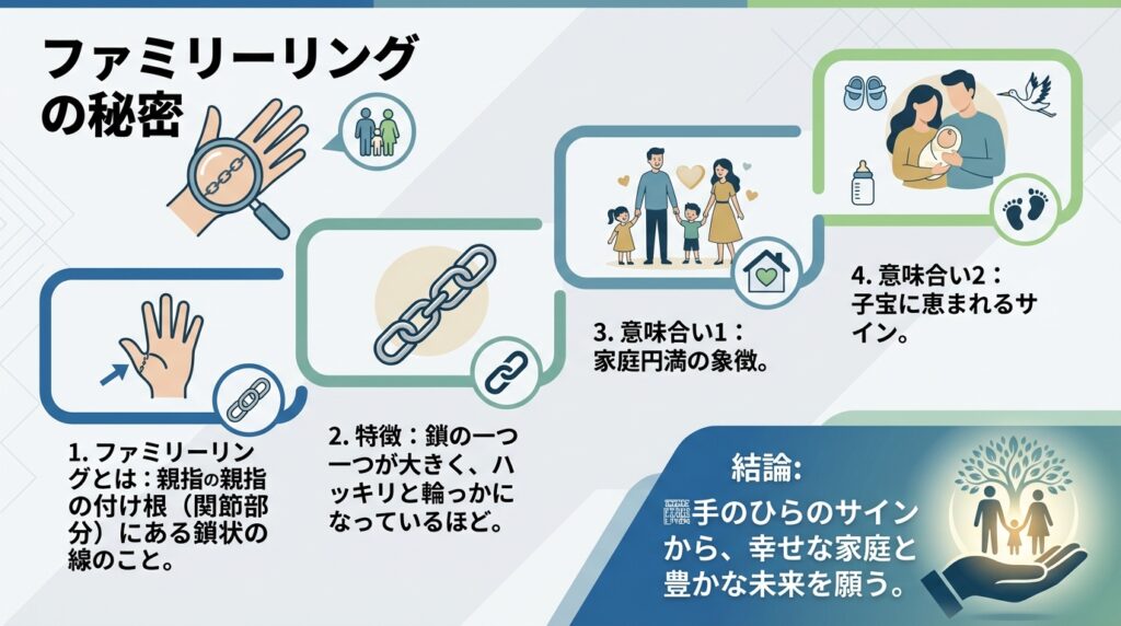 この鎖の一つ一つが大きく、ハッキリと輪っかになっているほど、**「家庭円満」「子宝に恵まれる」**と言われています。