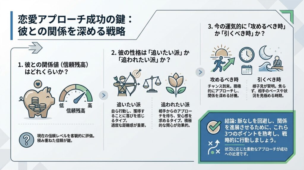 タイミングや分量を間違えると、単に「脈なし」と判断されて、彼が完全に離れてしまうリスクがあります。